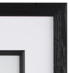 A sleek and stylish black mounted inlay box frame. A bevelled and painted wood-effect frame with a white inlay. A contemporary design to suit most images and surroundings.